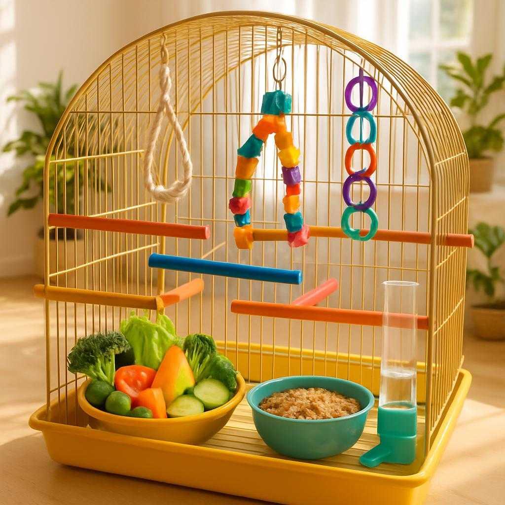 - מוטות עמידה במגוון עוביים עליהם יוכל התוכי לנוע וגם לקפץ ביניהם